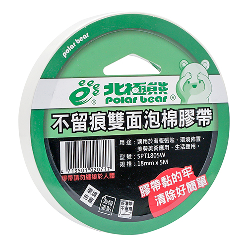 北極熊 不留痕雙面泡棉膠帶/雙面膠 18mm*5M SPT1805W