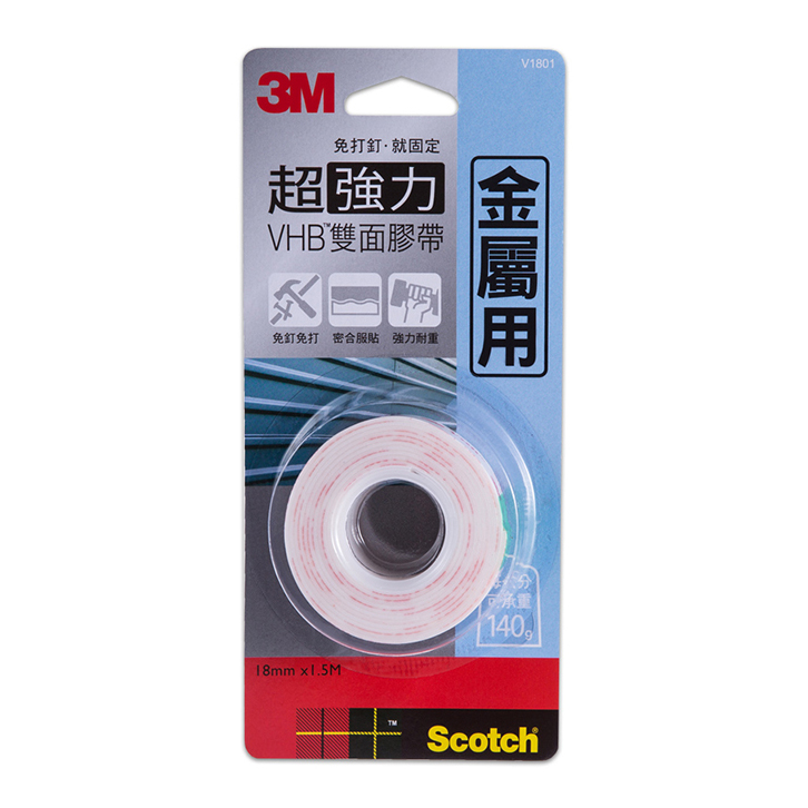 3M™ Scotch® 思高牌 V1801 金屬用/金屬專用VHB™超強力雙面膠帶 壓克力膠帶 強力泡棉膠18mm×1.5m
