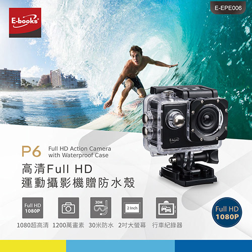 E-books P6 高清Full HD 運動攝影機贈防水殼