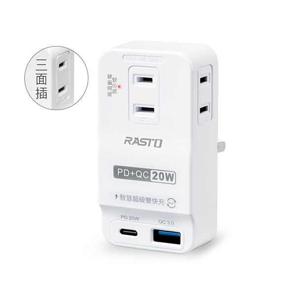 RASTO FP4 三插二埠20W PD+QC3.0壁插
