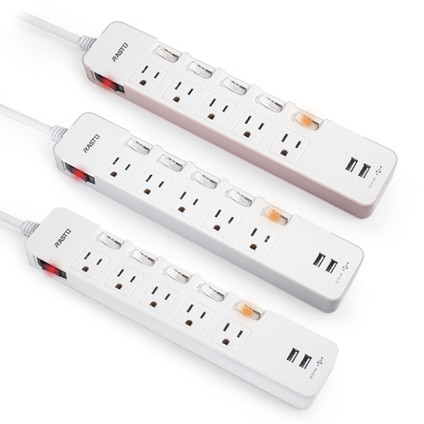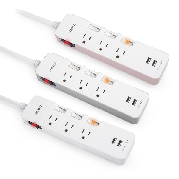 RASTO FE9 六開五插三孔二埠USB延長線 1.8M