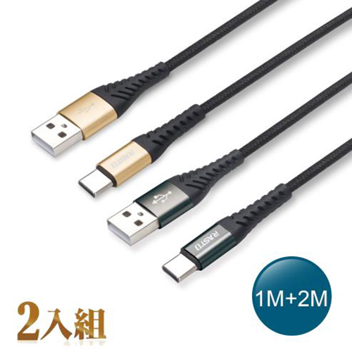 RASTO RX42 Type C 高速QC3.0鋁合金充電傳輸線雙入組1M+2...