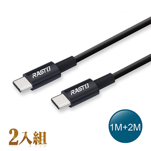 RASTO RX46 Type C to C高速QC3.0充電傳輸線雙入組1M+2M