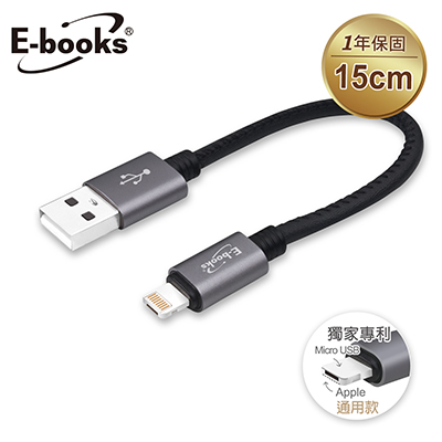 E-books X38 智慧快充QC3.0 雙系統通用充電傳輸皮革線 15cm