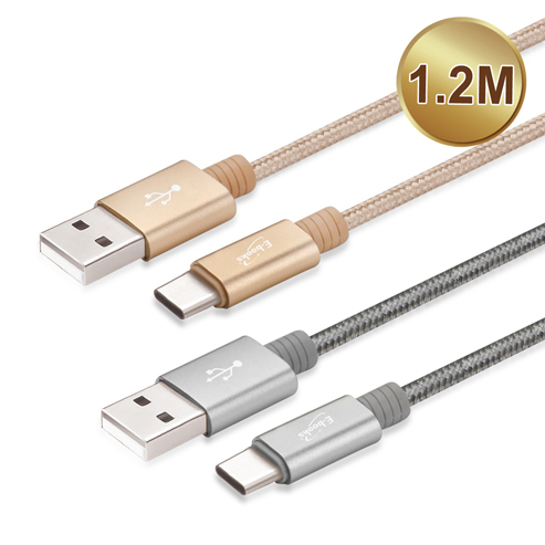 E-books X50 Type C 鋁製金屬軟管充電傳輸線 1.2M