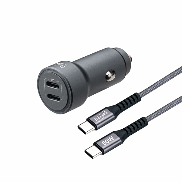 E-books B87 車用60W鋁合金雙PD 3.0+60W C to C 快充傳輸線組