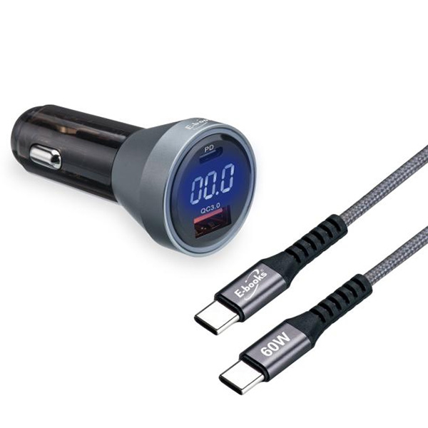 E-books B88 車用48W PD+QC3.0 數位顯示+60W C to C 快充傳輸充電組