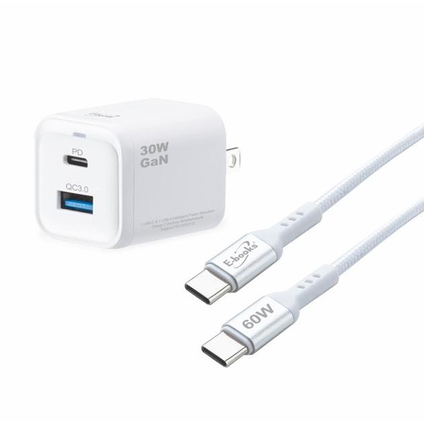 E-books B96 30W 氮化鎵PD+QC + 60W C to C 鋁製快充傳輸線組
