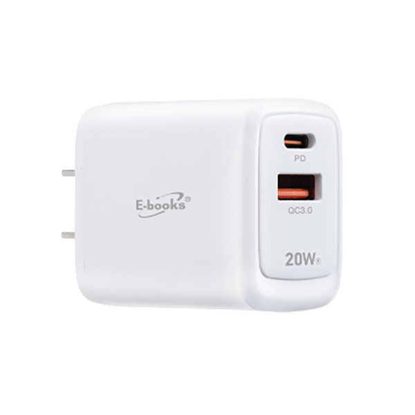 E-books B111 智能穩壓 20W PD+QC3.0雙孔快速充電器