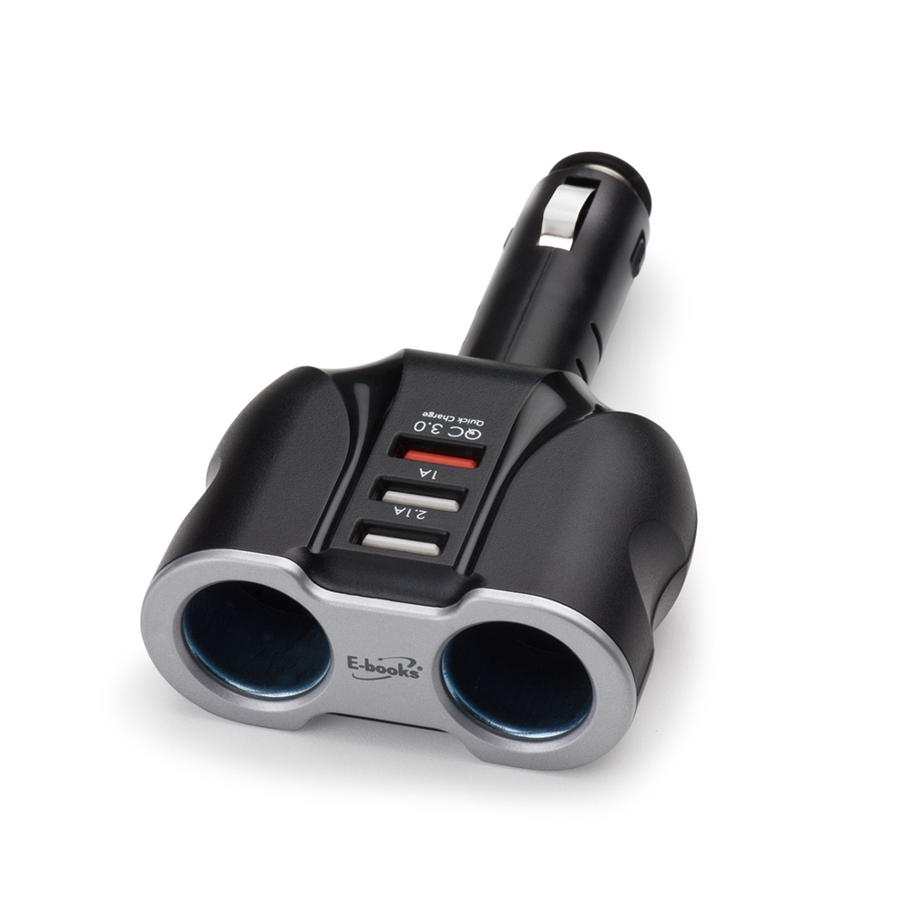 E-books B32 車用QC3.0 USB快充+雙槽擴充充電器