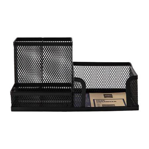 得力Deli多功能拉網金屬辦公收納盒/W9175/黑/200x100x98mm