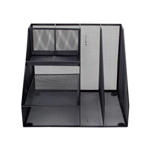 得力Deli多功能拉網金屬辦公收納盒/W79075/黑/320x265x270mm