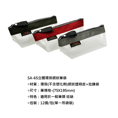 STRONG 自強牌 SA-65 立體環保網狀拉鍊筆袋 195x75mm