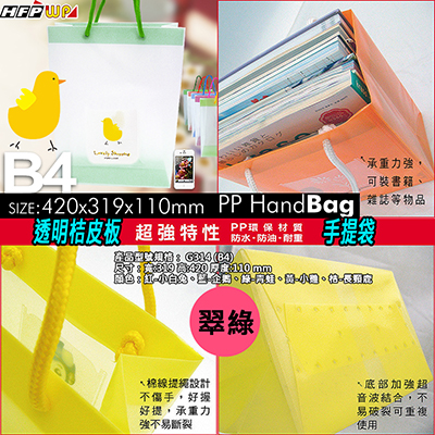 HFPWP 超聯捷華富 透明桔皮板手提袋翠綠(B4)