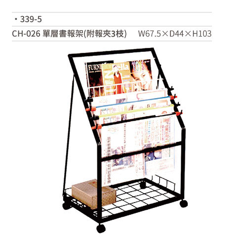 CH-026 單層書報架 (附報夾3枝) 339-5 W67.5×D44×H103cm 需自行組裝