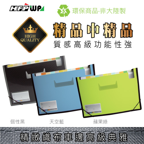 HFPWP 車邊12層風琴夾/公文夾/文件夾+名片袋版片加厚 NO.F41295-SN-GN綠
