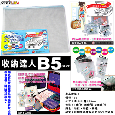 HFPWP 超聯捷華富 霧面網狀拉鏈包(B5)粉紅