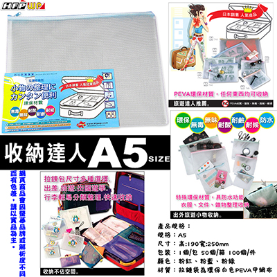 HFPWP 超聯捷華富 霧面網狀拉鏈包(A5)粉藍