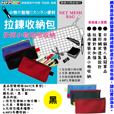 HFPWP 超聯捷華富 彩色網狀拉鏈包 P/C SIZE 黑