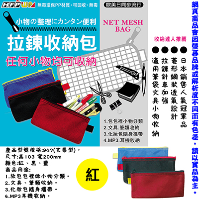 HFPWP 超聯捷華富 彩色網狀拉鏈包 P/C SIZE 紅