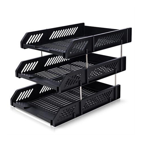 得力Deli三層拉網金屬公文架/W9181/黑/350x297x275mm
