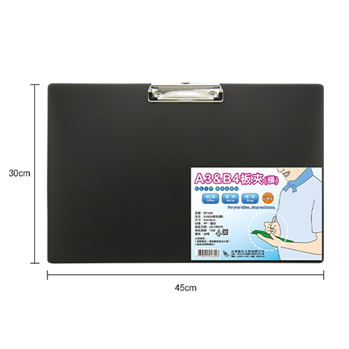 WIP台灣聯合 A3&B4 PP橫式板夾 300x450mm NO.EP-046