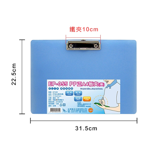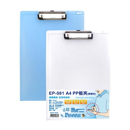 WIP台灣聯合 正A4 PP橫式板夾 (不易碎) NO.EP-055