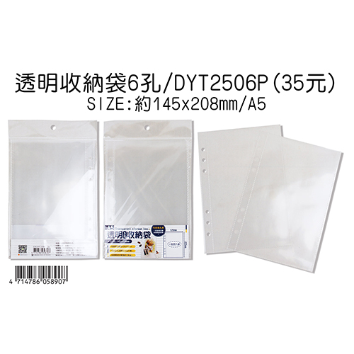 DOW DEAN 豆點 A6 6孔透明收納袋DYT-4806P 4入