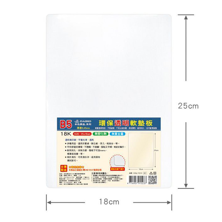 CHYUAN SHYANG 筌翔 本色原品 (B5)18K 環保透明軟墊板/桌墊 OGL1523