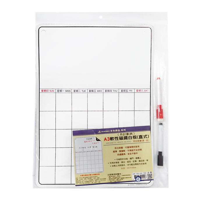 筌翔 OGL1550 本色原品軟性磁鐵白板直式(月計劃表) 33x34cm