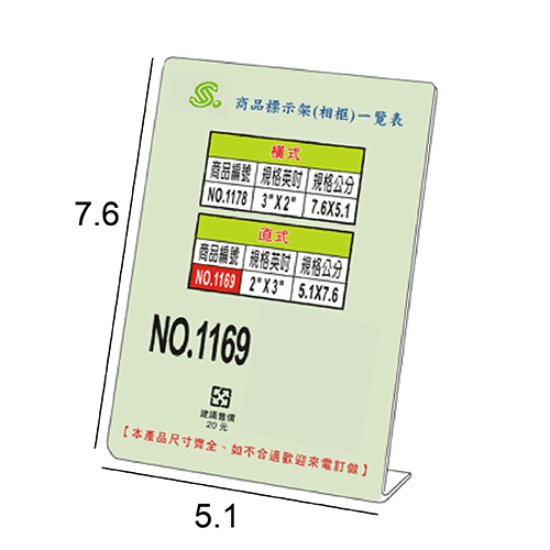 文具通 NO.1169 2X3 L型壓克力商品標示架/相框/價目架 直式5.1x7.6cm