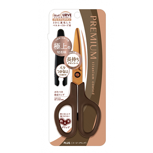 PLUS 普樂士 SC-175STN 30度弧線剪刀 (鈦金屬+3D凹面不沾膠) 深褐 35-658