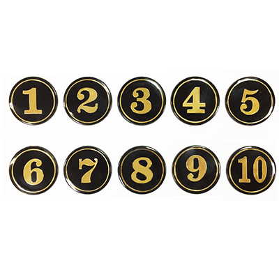 A1 5cm數字圓貼牌/黏牌/標示牌/桌牌 黑底金字 1~99