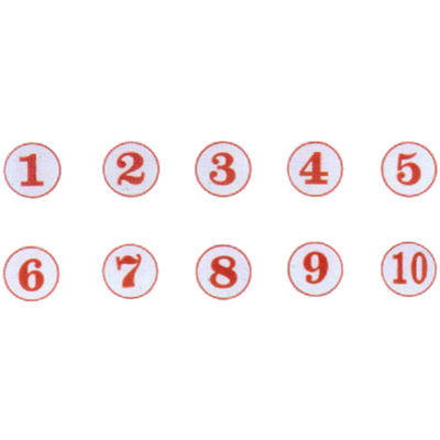 A3 5cm數字圓貼牌/黏牌/標示牌/桌牌 白底紅字 1~99