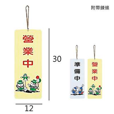 SA-102 準備中.營業中 直式 12x30cm 雙面壓克力標示牌/指標/標語/吊牌 附鏈可掛