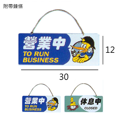 SA-104 營業中.休息中 橫式 12x30cm 雙面壓克力標示牌/指標/標語/吊牌 附鏈可掛
