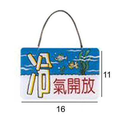 RQ-328 冷氣開放 橫式 11x16cm 壓克力標示牌/指標/標語 附鏈條吸...