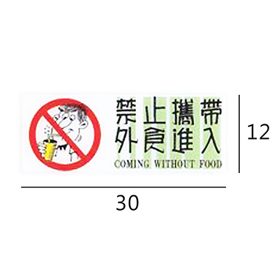 RA-152 禁止攜帶外食進入 橫式 12x30cm 彩色壓克力標示牌/指標/標語 附背膠可貼