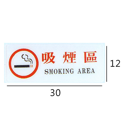 RB-298 吸煙區/吸菸區 橫式 12x30cm 壓克力標示牌/指標/標語 附背膠可貼