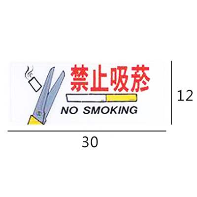 RA-125 禁止吸煙/禁止吸菸 橫式 12x30cm 彩色壓克力標示牌/指標/標語 附背膠可貼