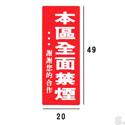 TK-921 本區全面禁煙謝謝您的合作 直式 20x49cm 大型壓克力壓克力標示牌/指標/標語 附背膠可貼