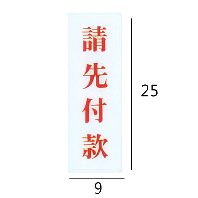 RC-257 請先付款 直式 9x25cm 壓克力標示牌/指標/標語 附背膠可貼