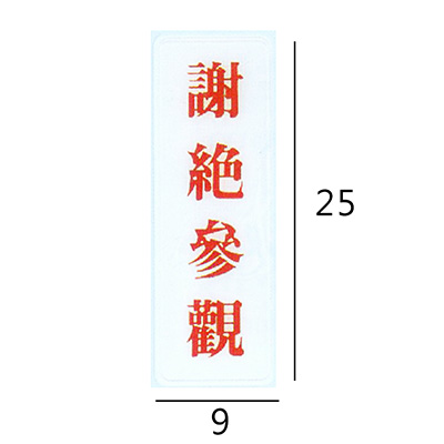 RC-251 謝絕參觀 紅字 直式 9x25cm 壓克力標示牌/指標/標語 附背膠可貼