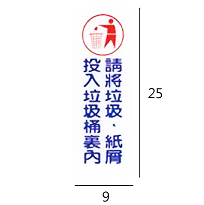 RC-273 請將垃圾/紙屑投入垃圾桶裏內 直式 9x25cm 壓克力標示牌/指標/標語 附背膠可貼