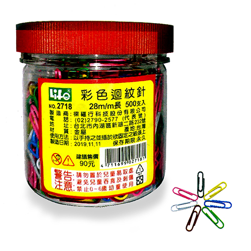 Life 徠福 NO.2718 彩色迴紋針 28mm (約500入)