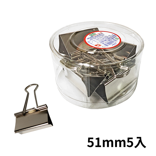 Life 徠福 銀色長尾夾 51mm 5入桶裝 NO.608