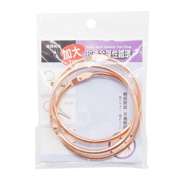 力韋 DK-6720 玫瑰金彈性鐵環/金屬卡片圈環 約直徑7cm (3入)
