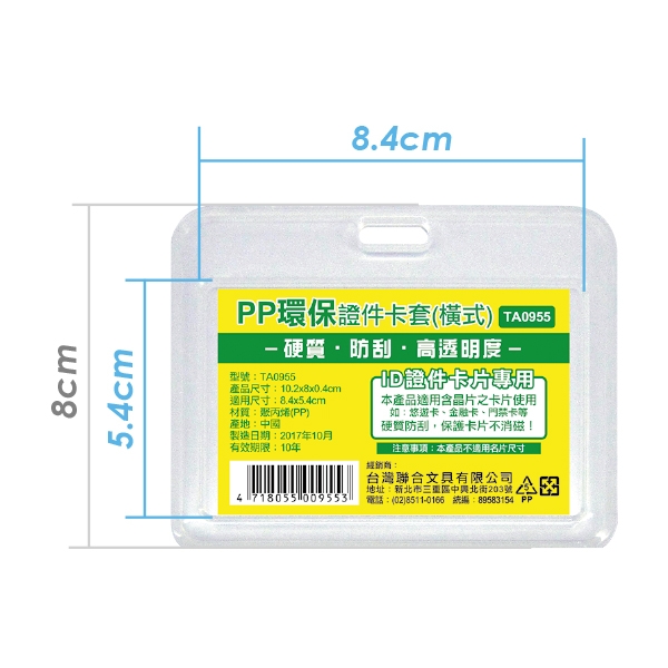 WIP台灣聯合 PP環保證件卡套(橫式) TA0955