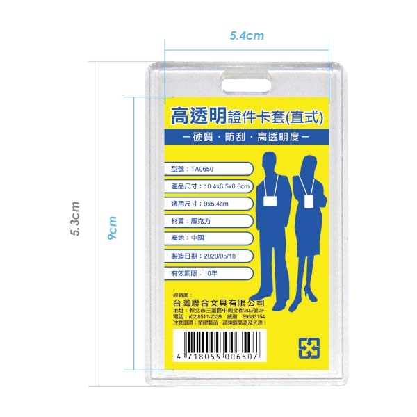 WIP台灣聯合 壓克力高透明證件卡套(直式) TA0650
