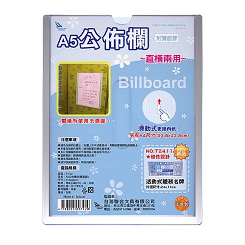 WIP台灣聯合 A5公佈欄 附雙面膠 NO.T1722 17.5x22cm